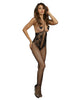 Seductive Design: The bodystocking features an alluring open-cup design paired with a knitted-lace 'teddy' for a sexy and provocative look.