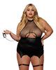 Dreamgirl Fetish Plus Size Stretch Faux-Leather and Fishnet Garter Slip and Leash Set